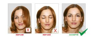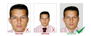 La photo ne doit présenter ni sur-exposition, ni sous-exposition. Elle doit être correctement contrastée, sans ombre portée sur le visage ou en arrière-plan. Une photo en couleur est fortement recommandée