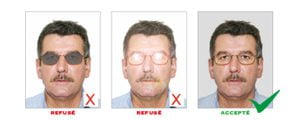 Par contre, si vous les portez, les montures épaisses sont interdites. La monture ne doit pas masquer les yeux. Les verres teintés (ou colorés) sont interdits. Il ne doit pas y avoir de reflets sur les lunettes.